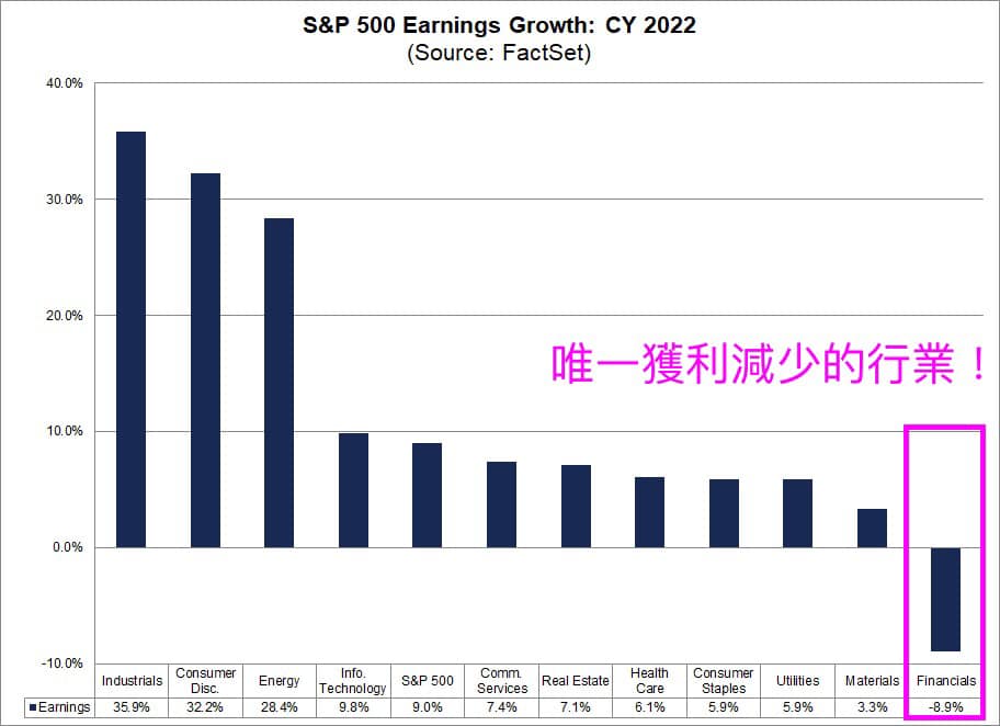 》獲利成長預期:Financials 金融板塊是唯一獲利減少的行業