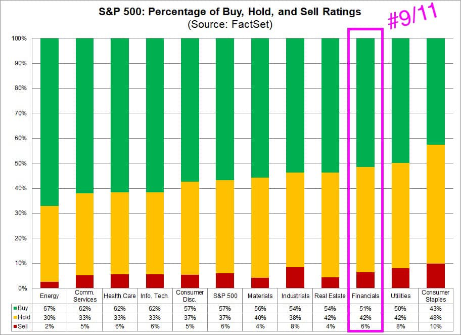 》華爾街分析師對各板塊的看好度:Financials 金融板塊為倒數第三