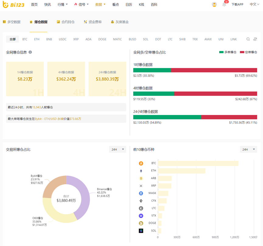 P.s:网站爆仓数据API免费提供,如有需要可随时联系。可以加我们Telegram: https://t.me/bi123_official