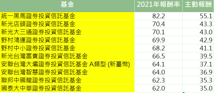 也就是說,2021年閉著眼睛隨便挑一檔台股基金,都有80%的機會,選到打敗大盤的基金。