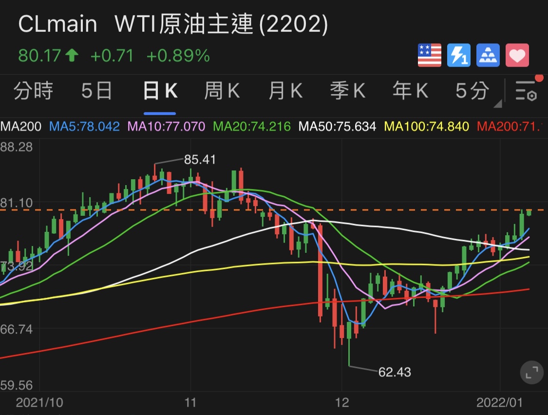 目前西德州 WTI、布侖特 Brent 原油每桶價格都突破$80 👉 剛好回到拜登去年11月23日宣布釋出戰備儲油時的價位