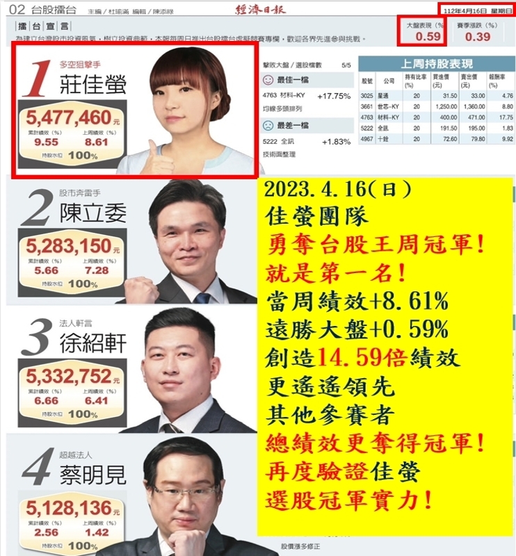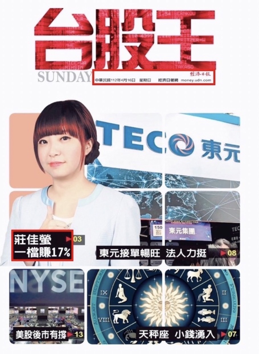 佳螢更在經濟日報擂台賽選中,【材料-KY(4763)】+17.7%登上頭版!