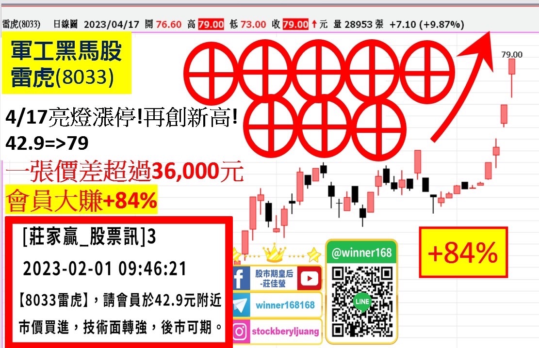 我們會員領先卡位買進的【8033雷虎】亮燈漲停!再創新高!