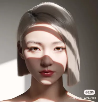 AYAYI首張公開的圖片被網傳為“神顏證件照”。這位虛擬人的外觀細膩得真假難辨。AYAYI的製作公司燃麥科技向我們介紹,AYAYI的職業規劃是成為數位藝術策展人和數位潮流品牌主理人。團隊根據編劇撰寫的人物小傳,尋找氣質相似的真人照片作為設計參考,經過40多個版本的修改才篩選出設計定稿。
