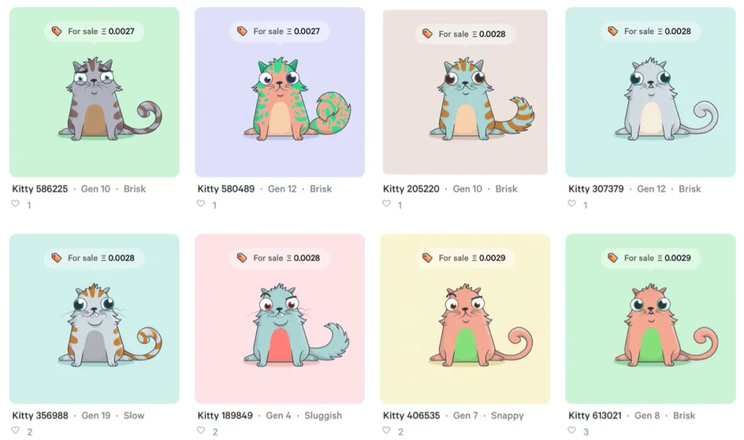 彼時,乙太坊作為萬眾矚目的明星專案,吸引了不少專案團隊開始嘗試在其網路上開發具體應用,而以加密貓(CryptoKitties)為代表的區塊鏈遊戲就曾掀起過一陣NFT的流行潮。