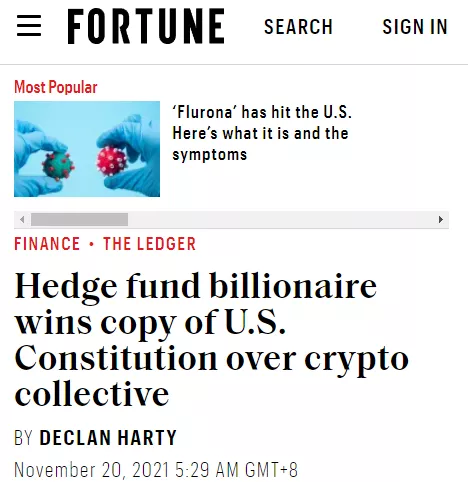 所以在故事的最後,一位來自芝加哥的富豪用微弱的優勢,擊敗了Constitution DAO,贏下了這場拍賣。