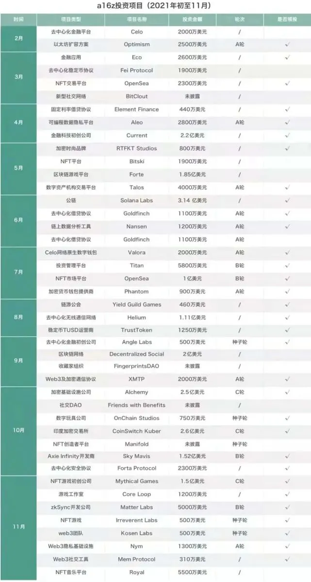 說了這麼多,其中最關鍵的是a16z 也殺入了幣圈,在今年更是投了一堆和Web3.0 相關的項目。