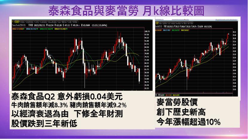 一般人都認為美國人愛吃牛排,但美國最大肉品供應和加工商-泰森食品2023年5月8日第2季意外虧損,因牛肉和豬肉價格下跌,下修2023年營收財測,導致這家美國肉類加工商的股價大跌到三年新低。由550億至570億元變為530億至540億元,低於市場預期。