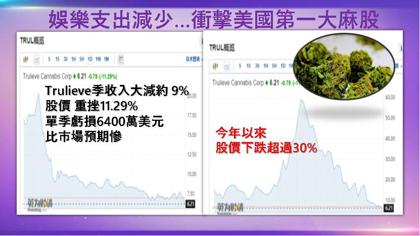 華爾街稱作是大麻第一股的大麻公司Trulieve (CSE:TRUL),2023年5月10日公佈的季度財報,季度營收降幅超預期。季度收入下降9%至2.89億美元,零售和批發業務的收入皆下滑。其季度淨虧損至6,400萬美元。Trulieve的股價下跌了30.1%。