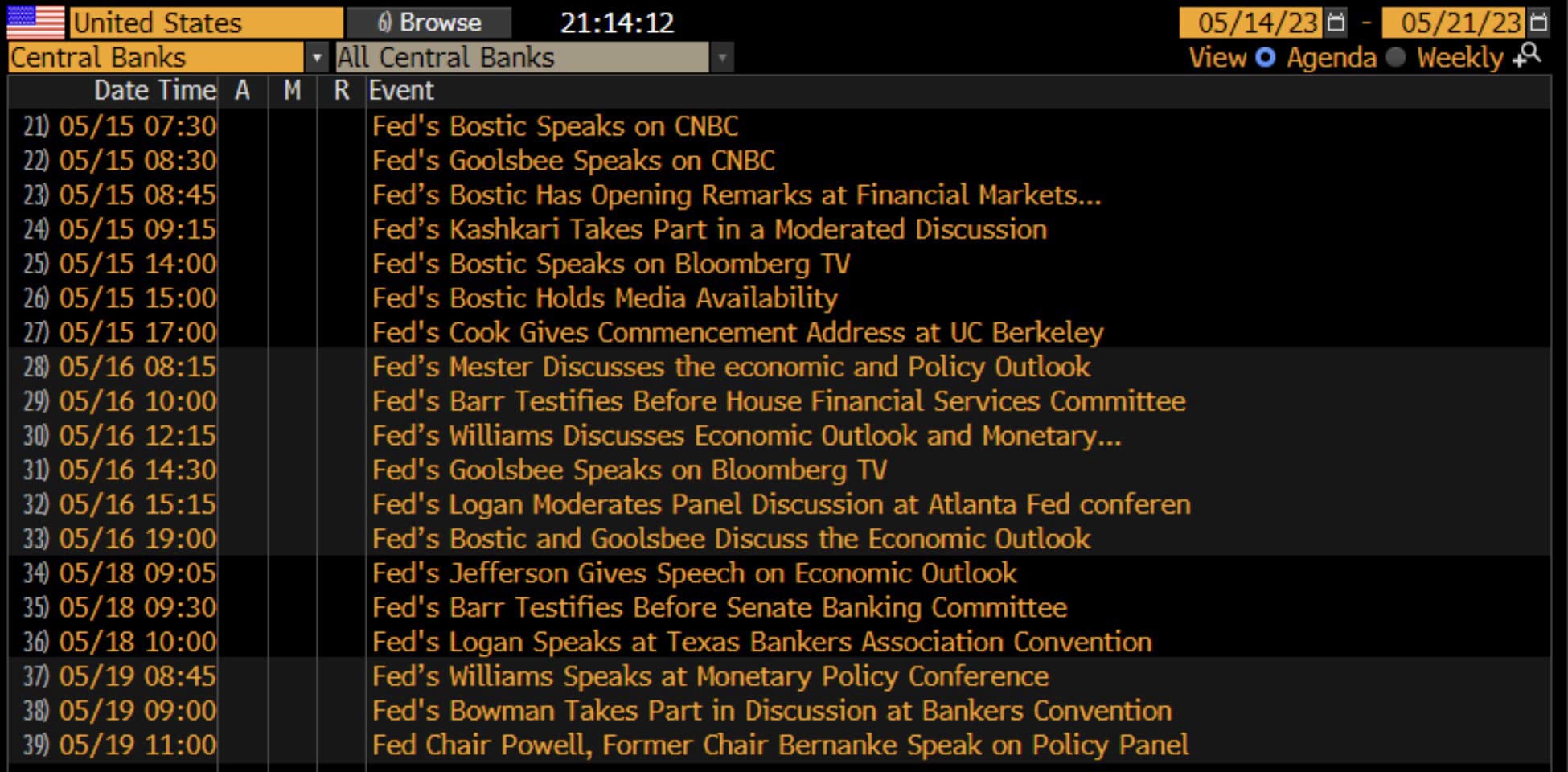 Fed 官員 5/15~5/19 發表談話時程