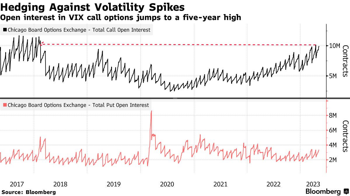 VIX 看漲期權未平倉量 (上)、看跌期權未平倉量 (下)
