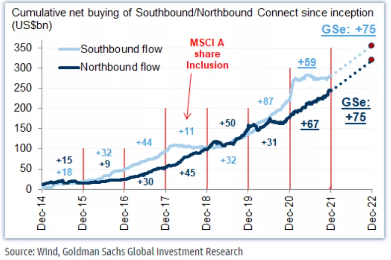 2021年創紀錄的北向資金流入和全球共同基金高配 A 股在一定程度上也反映了這一點。