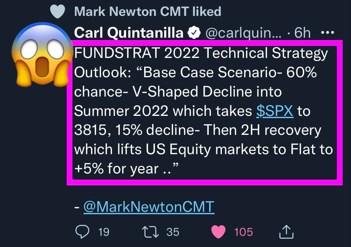 之前分享過 Fundstrat 對今年美股的預期是上半年下跌 10%,下半年回升至 5100 點,但目前其對上半年的態度更為悲觀。