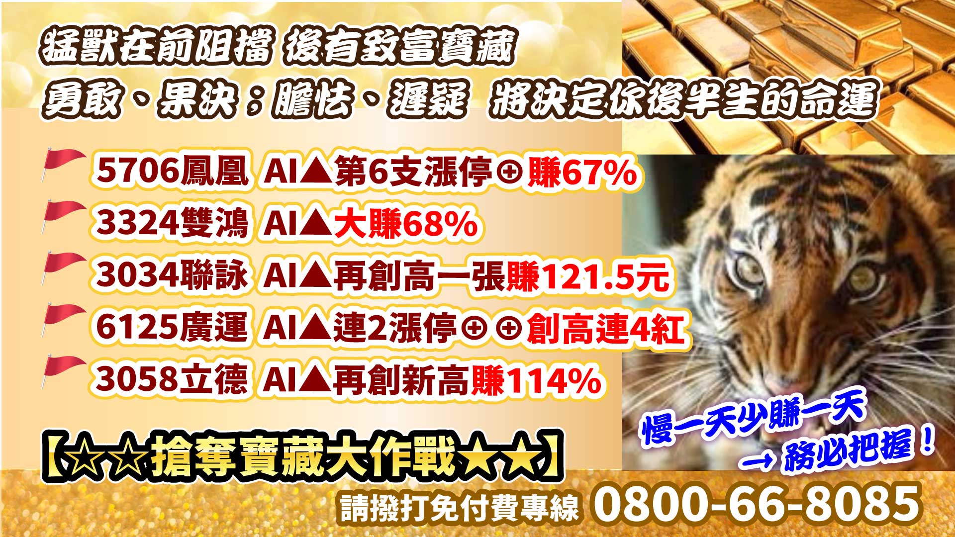🚩AI▲鳳凰第6支漲停⊕賺67%