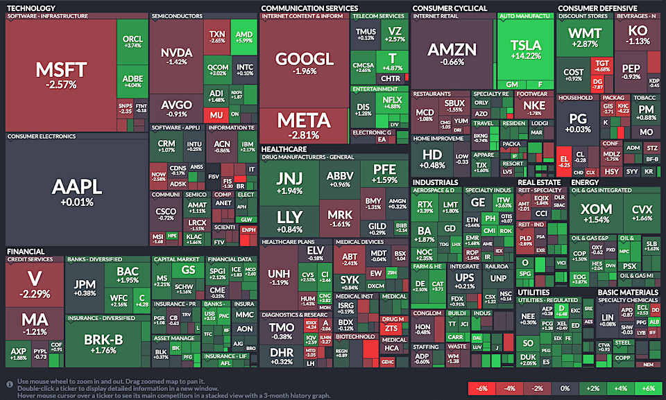 圖 1-4、S&P 500 上週漲跌幅顯示板塊出現輪動、科技巨頭表現不佳: