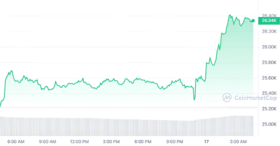 據CoinDesk資料顯示,市值最大的加密貨幣最近的交易價格為26,369美元,過去24小時內上漲近5%。週四早晨,比特幣交易價格跌至低於25,000美元,那是近三個月的最低點;然而,貝萊德提交文件僅數小時後,比特幣價格便收於約25,500美元。