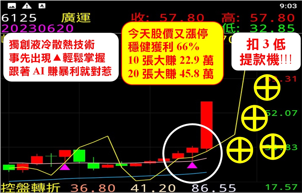 🚩廣運:AI▲連2漲停⊕⊕賺66%