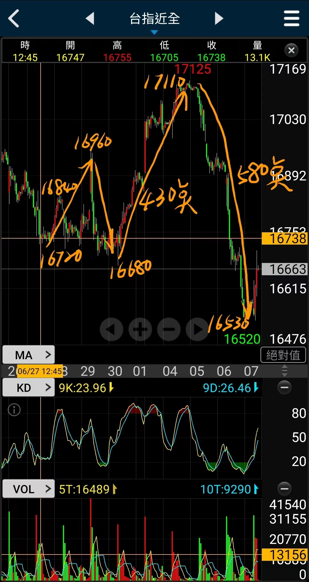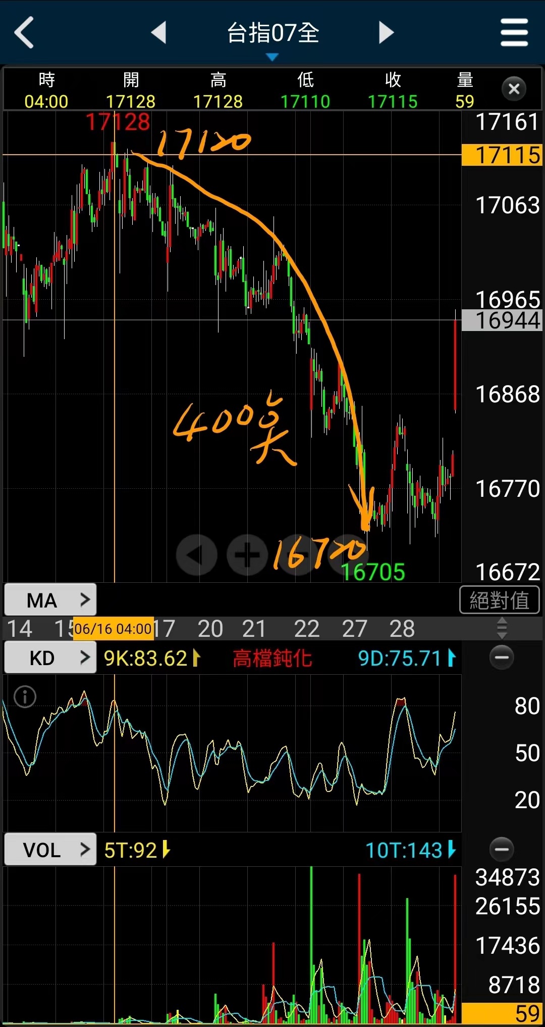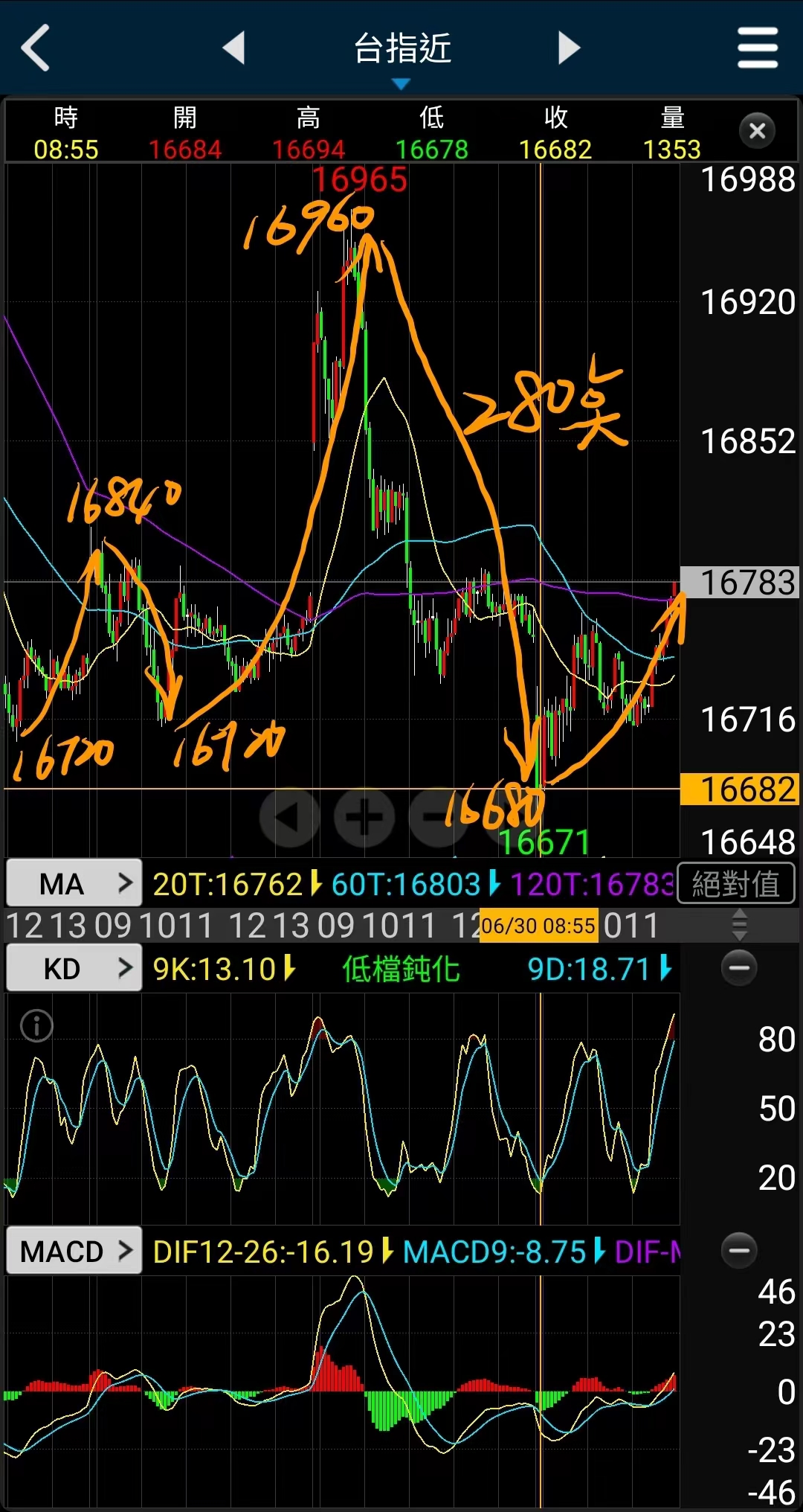台指16960/摜破16680/越過16780來回又有近400點價差!