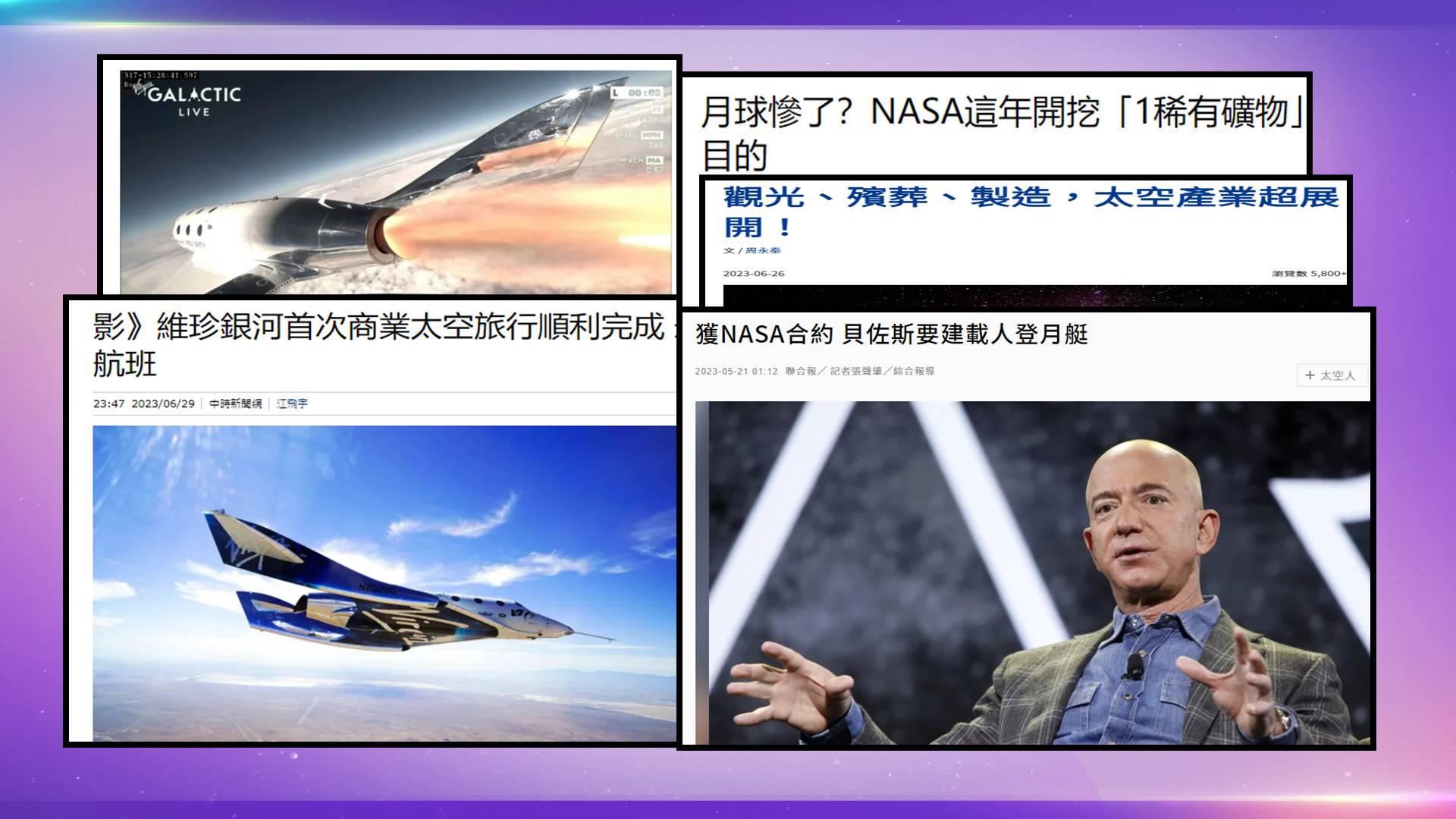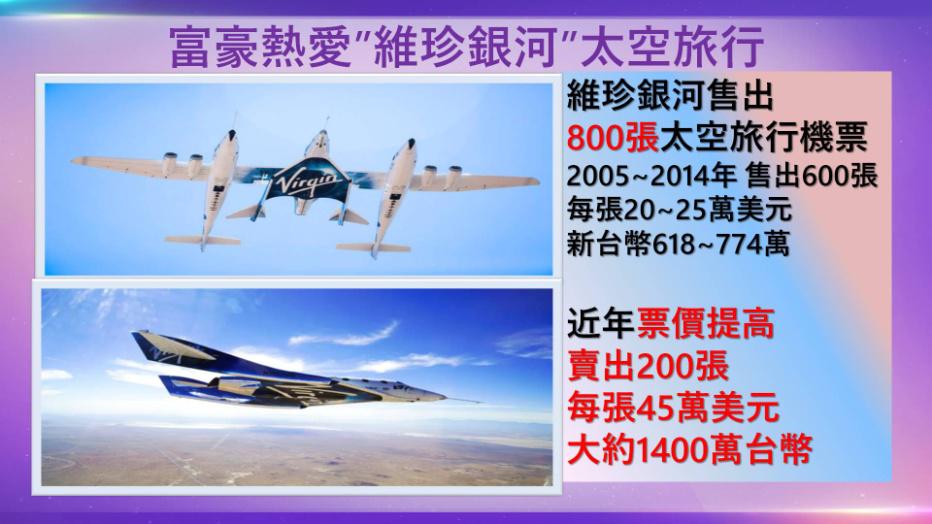 「次軌道」競爭:維珍銀河與億萬富翁貝佐斯(Jeff Bezos)的藍色起源(Blue Origin),藍色起源已將32人送入太空。目前兩大富豪間的太空旅行競賽,以布蘭森暫時領先。