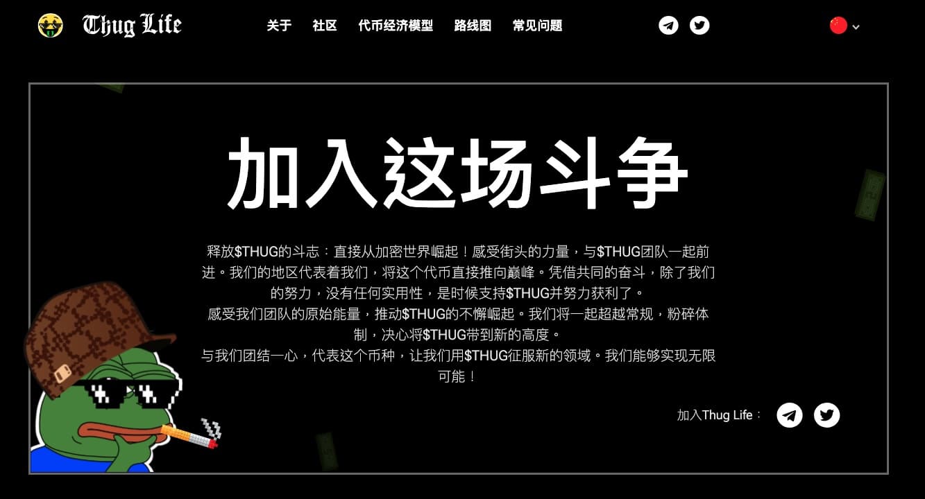 $THUG以類似受歡迎的“Thug Life”主題出現,可能很容易引起熱潮。