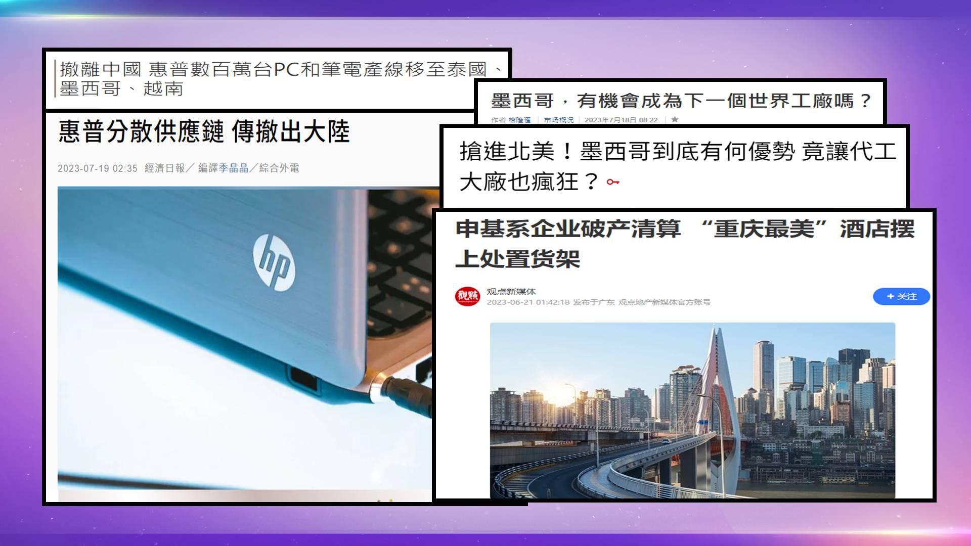中國內陸城市重慶,惠普從2008年開始開發重慶廠為筆電製造中心。宏碁和華碩追隨惠普的腳步,要求供應商將生產轉移到長江沿岸的城市。重慶市也是眾多惠普供應商的所在地,包括廣達電腦、英業達和富士康,重慶成為中國第一大PC出口城市。