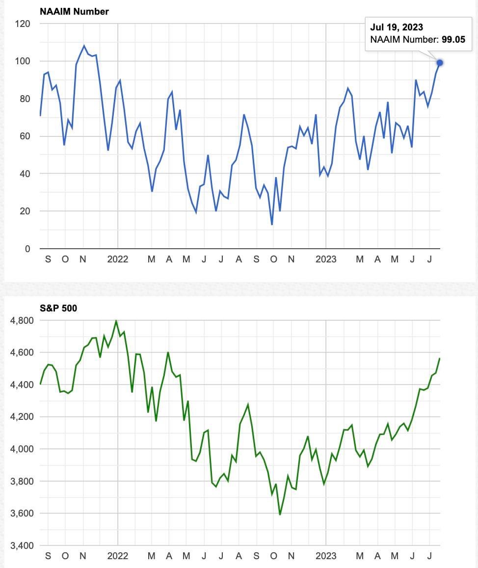 主動管理基金持倉 NAAIM 指數上週三 (7/19) 攀高至 99.05 (圖 1-11),雖不代表指數即將反轉,但風險升高,根據 BofA 策略師 Michael Hartnett 分析,資金連續 8 週強勁流入科技股...