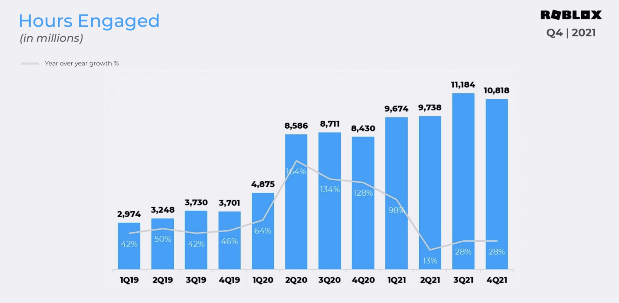 👎🏾圖4: hour engaged同比增長28%,但與DAU一樣,除遠低於2020外,也低於2019 的40%~50%