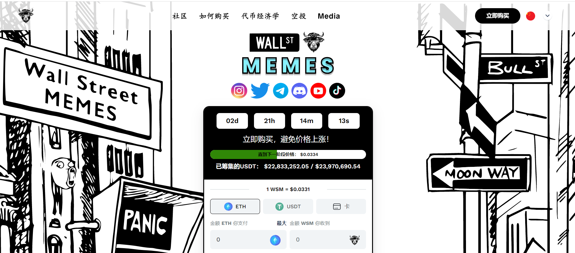 早前$PEPE代幣的曝漲令人意識到MEME幣的潛力,無論是人氣,還是背景故事更吸引的$WSM自然更看高一線,勢必再次掀起MEME幣熱潮,根據而Wall Street Memes 專案官方網站,$WSM 代幣在Wall Street Memes 社區供應量百分之百,其中百分之五十用於預售,百分之三十用於社區獎勵,百分之十用於CEX 流動性,百分之十用於DEX 流動性,目前預售相當成功,專案市值目標為100億美元的,預購價入手將有巨大升值空間。