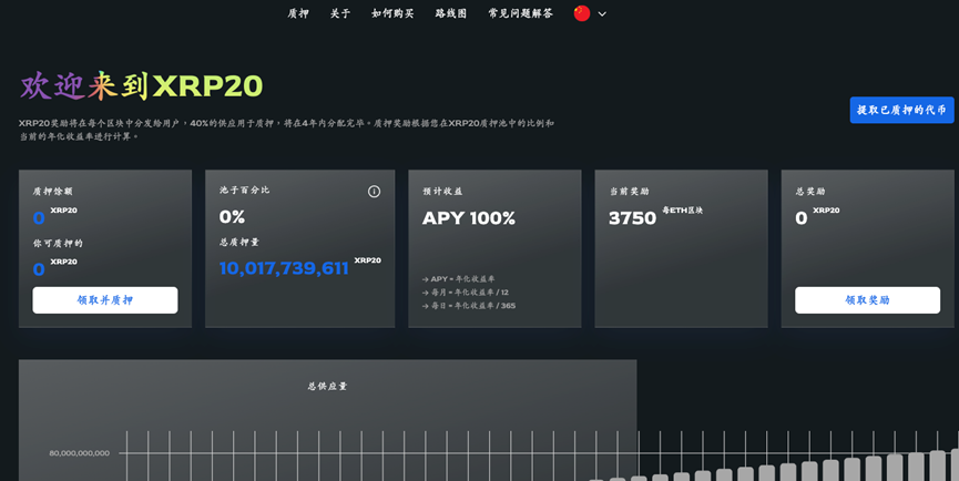 與 XRP 不同,XRP20 團隊設計了一個抵押系統,其中 40% 的總供應量被保留作為抵押的獎勵。