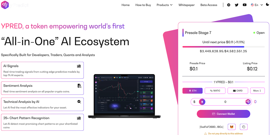 預售已分配8000 萬枚代幣。目前,在預售的第四階段,$YPRED 的價格為每個代幣 0.1 美元。不過,上市後價格將躍升至 0.12 美元,較目前價格上漲 20%。