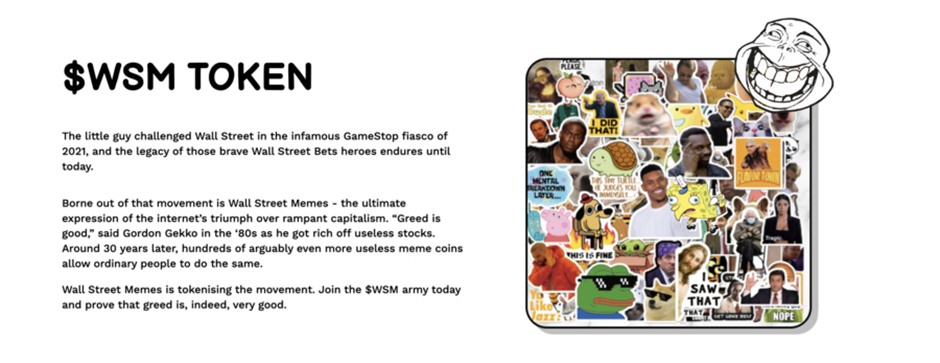 由此,華爾街模因(WSM) 代幣預售於 2023 年 5 月誕生,利用其既定的聲譽和所有社交媒體管道上超過100 萬粉絲的社區。