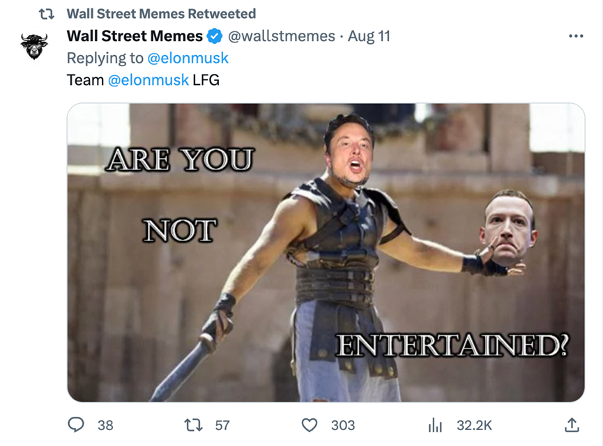 華爾街迷因投資社區的影響力甚至使世界上最富有的人,也是Twitter上最多關注者的人,埃隆·馬斯克,在幾次場合與其Twitter帳戶互動。