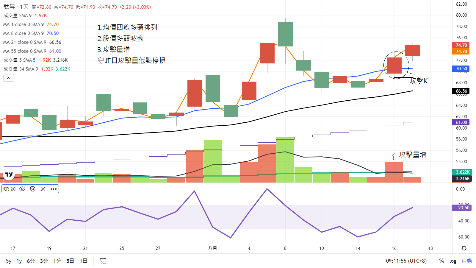8027鈦昇,短多現,守昨日低點停損,沿短均線向上操作