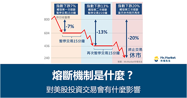 美股並沒有像台股的10%漲跌幅限制,不過美股會在市場發生劇烈波動時,強制暫停交易一段時間