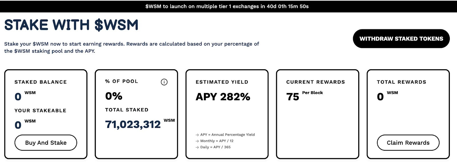 隨著將質押實用性引入$WSM代幣,代幣持有者將因為他們對該項目的早期承諾而獲得回報。