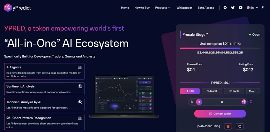 yPredict是一個結合AI技術的加密貨幣分析和研究平臺,旨在為投資者提供深入的市場見解和預測。
