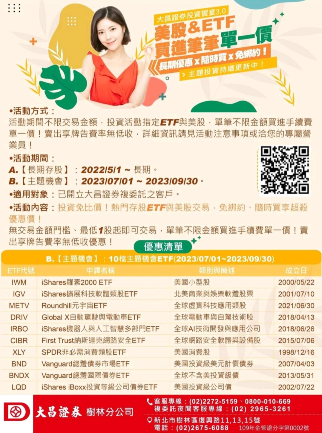 B.【主題機會】10檔美股&10檔ETF:活動期間:2023/02/01 ~ 2023/04/30。