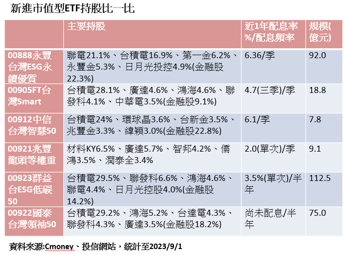 雖然高股息ETF大受投資人歡迎,不過各大基金公司近一年來也默默布局市值型ETF,陸續有六檔市值型ETF登場,其中有三檔都還未滿6個月。
