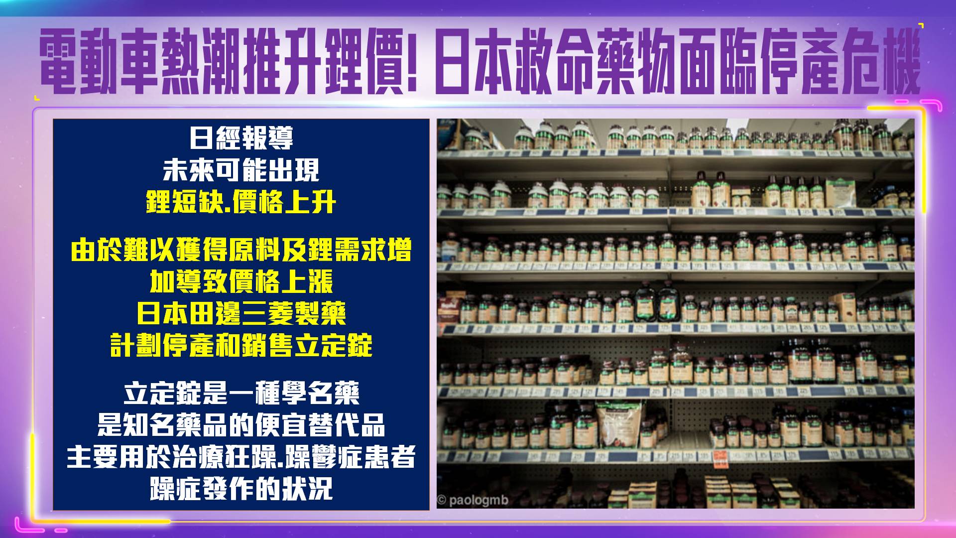 電動車熱潮推升鋰價!日本救命藥物面臨停產危機