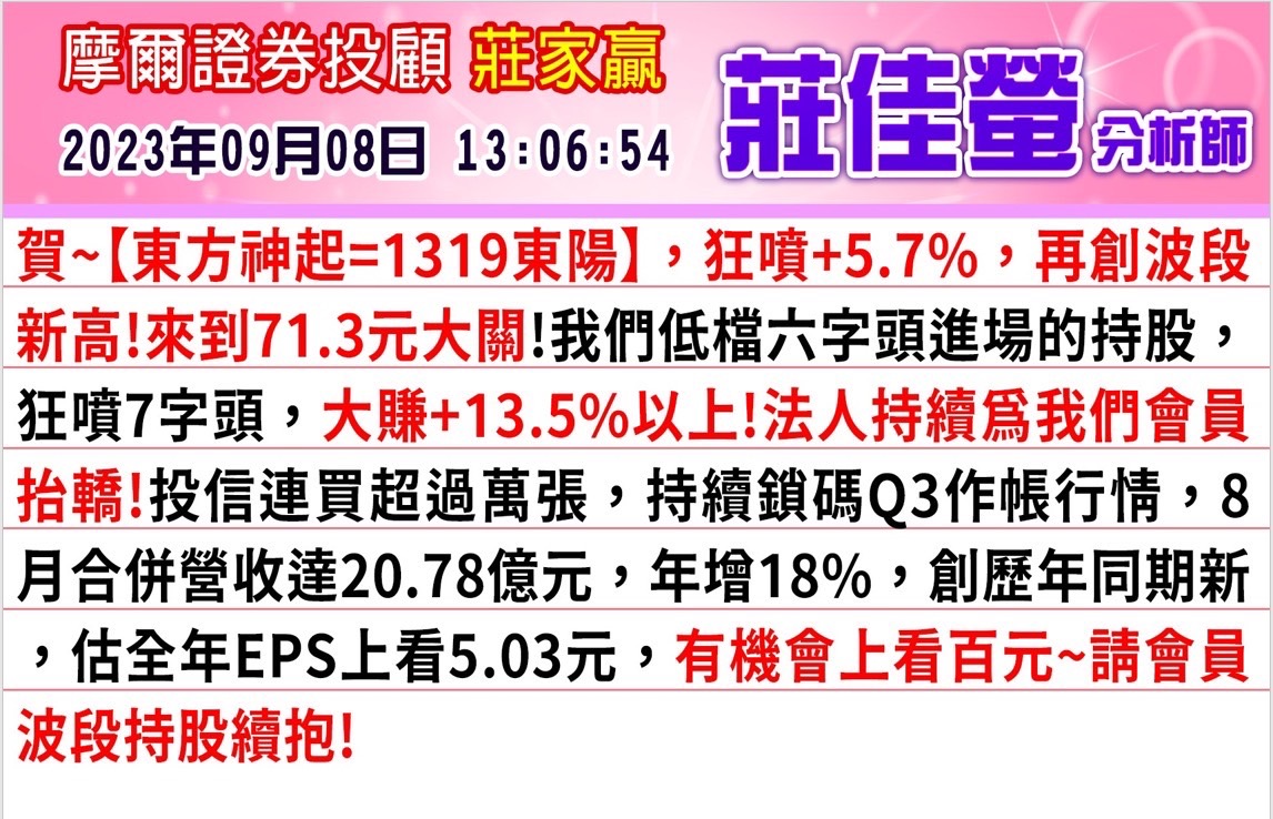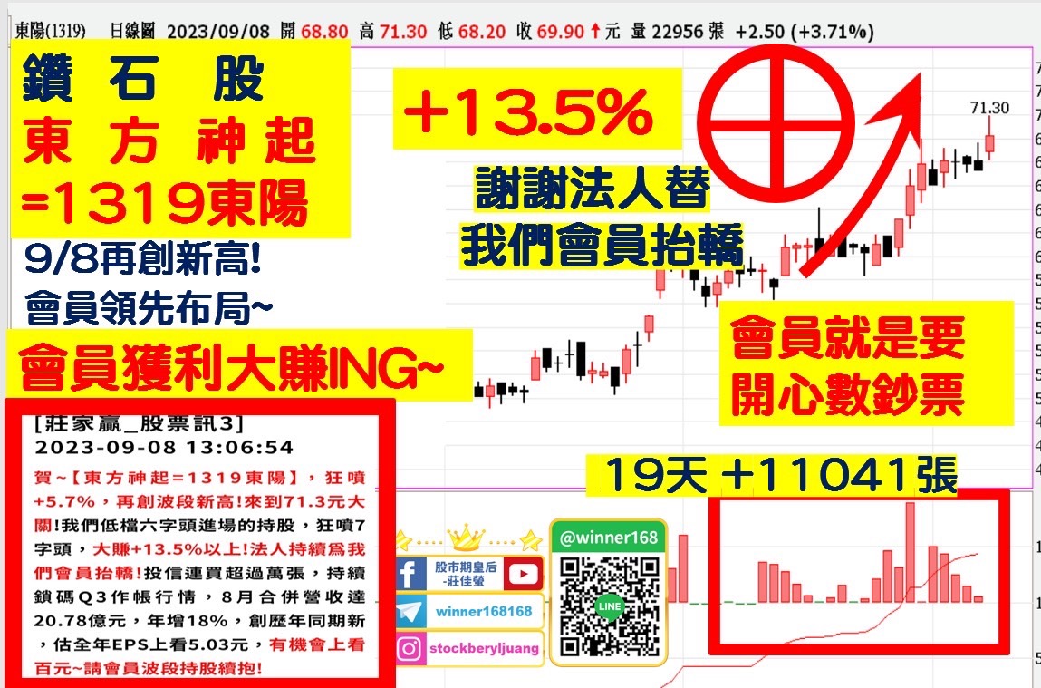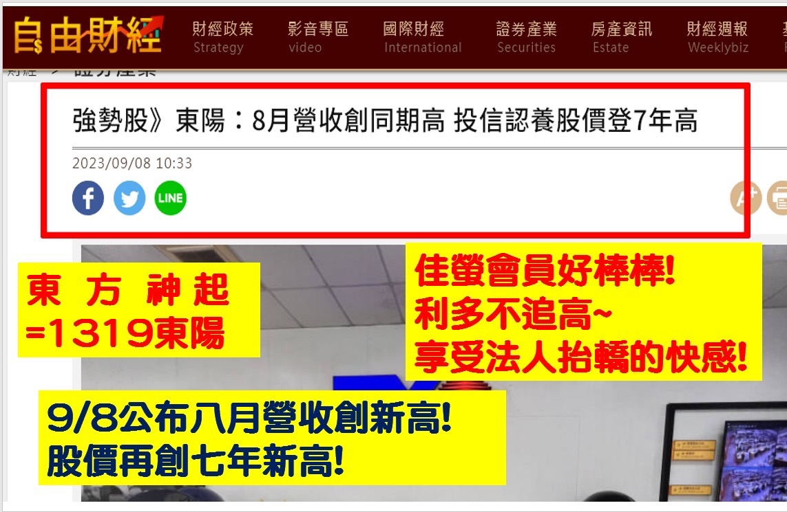 佳螢在2023.8.31專欄都有領先預告(1319-TW)東陽,可列為口袋名單