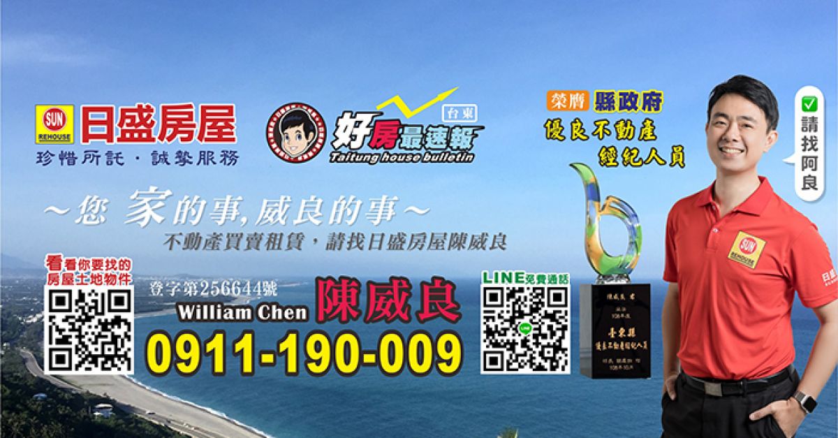日盛房屋-陳威良提供台東不動產最新的買賣資訊,透過精準的市場行情,讓您了解第一手房屋市場。