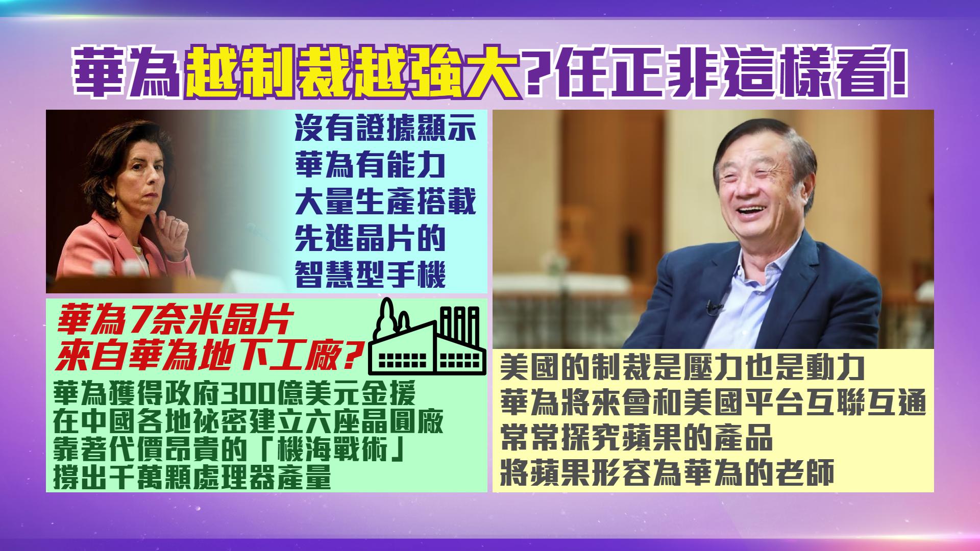 美國商務部長雷蒙多9/19表示,沒有證據顯示華為有能力大量生產搭載先進晶片的智慧型手機。但也坦言,她對華為發表的新款手機感到憂心
