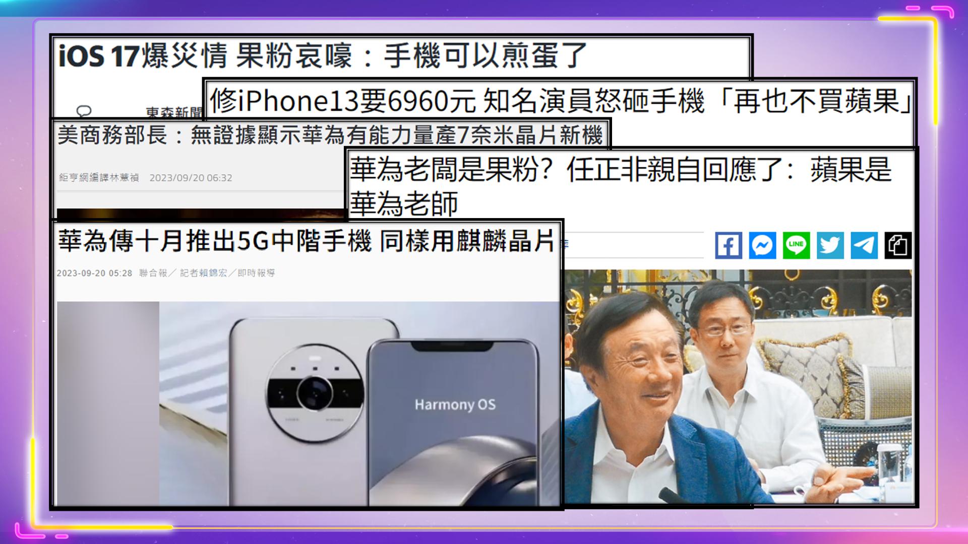 蘋果的IPHONE15即將販售,迎來的是iOS17的更新。除了待機模式還有我們看到的聯絡人傳送之外,更多的是耗電量即噴的重大災情。每年換新機舊機舊降速,這是一個蘋果的不傳之密,過去已經被法國處罰。所以很多人就笑稱如果你的所在地換成法國,基本上就不會被降速。不過反過來說,目前遇到蘋果最大的勁敵是華為。華為在美國制裁之下,其實推出了Mate 60 Pro,”雷蒙多”其實就表示沒有證據去顯示華為有能力去生產智慧型手機,去生產先進晶片,但是卻已經造出來了。所以接下來的重點就是華為再低調的生產晶片,高調的推出產品下,其實華為目前來講是贏面贏過蘋果許多。所以接下來十月推出的中階手機可能是麒麟830,九月底可能也會推出平板的MatePad Pro,這個都搭載9000S麒麟的晶片。博主也去打開更新了Mate60的解鎖之後,發覺是12核心而且擊敗了驍龍8 Gen 2。因此我們認為接下來這一波的重點就朝選股的方向。1.電子通路商。2.軟板。除了高通之外,包含嘉聯益和臻鼎可以拉回來找買進的機會。興哥抖音