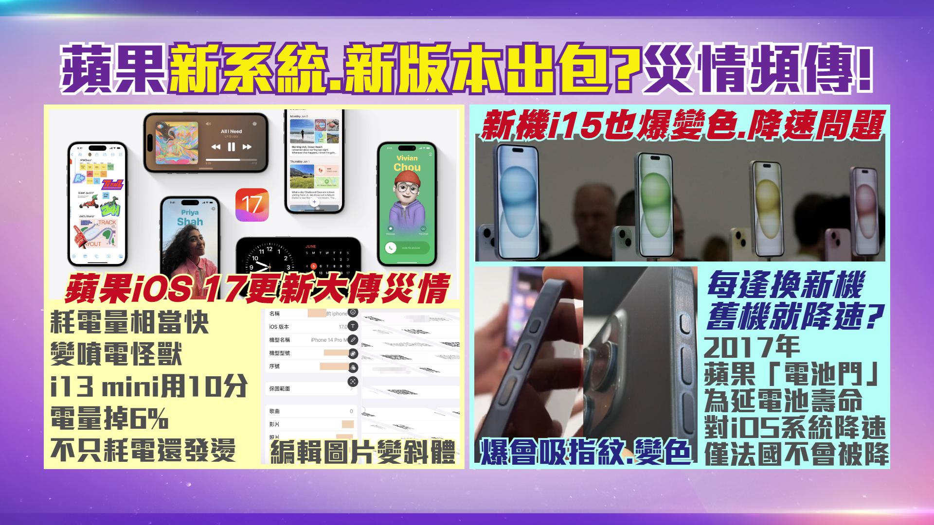 蘋果新款手機iphone 15推出後,有用戶就表示,只要蘋果出新手機,舊款手機就會被降速,無奈揭打不開圖片、無法搜尋網頁等慘況。