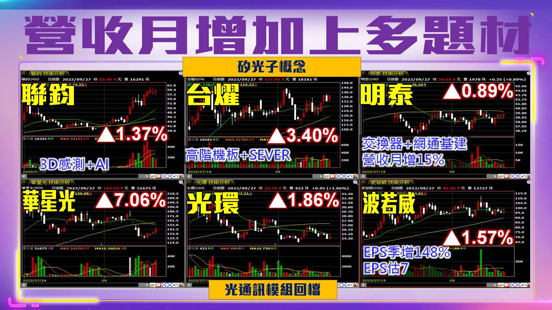 晶圓代工接下來發展的重點往光纖傳輸,也就是矽光子技術來做發展。近期傳出一個消息,國發基金投資的台灣奈微光取得的專利,居然出賣給中國。也就是說接下來全球的市場包含NVIDIA、博通等等,都對光通訊有非常大的興趣。所以趁著這個時候,如果市場不好,我們要往下個階段來走。2023年度相對強勢的格局,我們認為矽光子概念就找落後補漲。以明泰有雙題材,這個題材就是矽跟網通基建。接下來就是光通訊模組,所以這兩個題材我們認為都是市場的明日之星。興哥抖音
