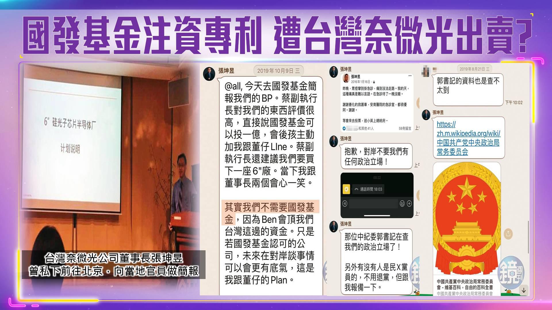股東C先生指出,張坤昱與股東們的對話顯示,台灣奈微光公司申請國發基金的目的,是為了在對岸談事情會「更有底氣」,實際上根本不需要國發基金。張還出示自己前往北京向官員簡報的照片,等於證明將台灣奈微光公司的技術偷偷轉移。