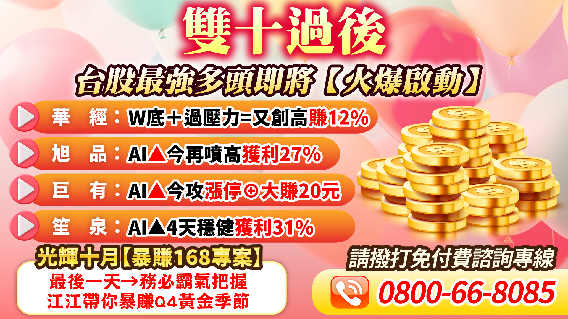 『暴賺168專案』最後一天→務必把握暴賺Q4黃金季節!