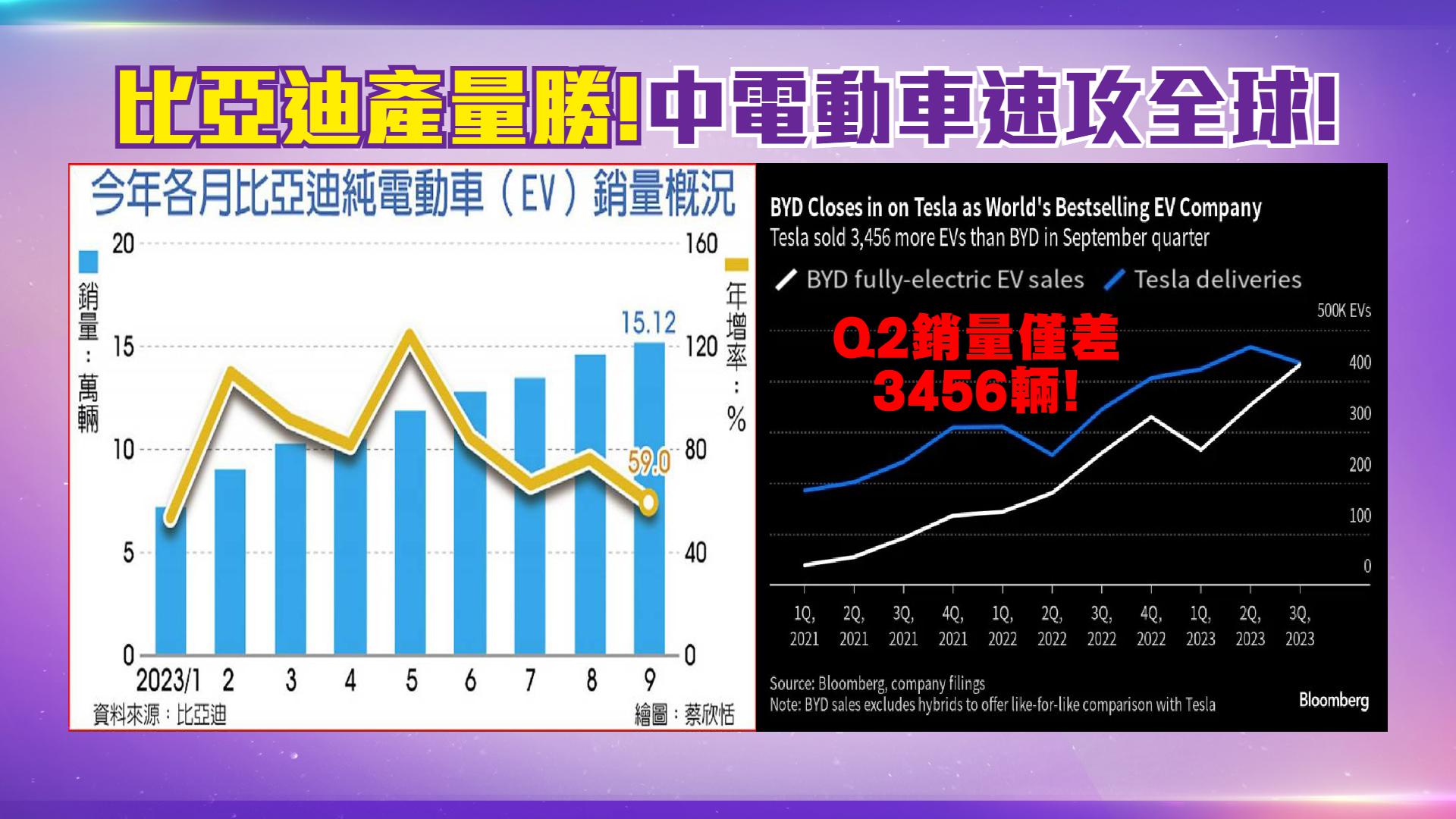 中國車市已「內卷」至價格割喉戰,但比亞迪產量在2023年第三季已超越美國電動車霸主特斯拉,奪下全球電動車產量冠軍。
