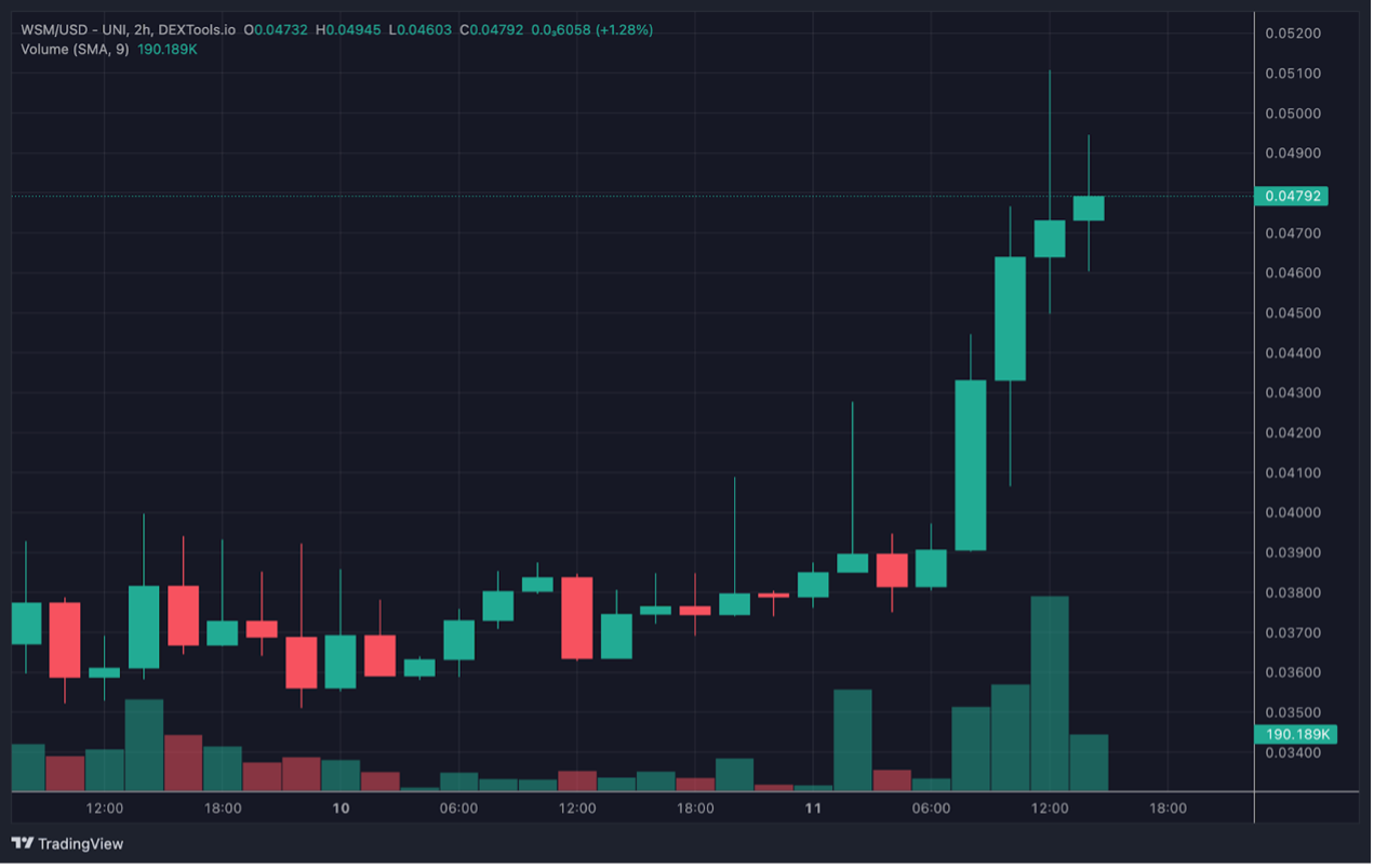 如果WSM成功將模因股票熱潮的火花傳遞到加密領域,並通過一場史詩級的空頭擠壓活動徹底改變市場格局,那麼WSM代幣的價格將會有無限可能。