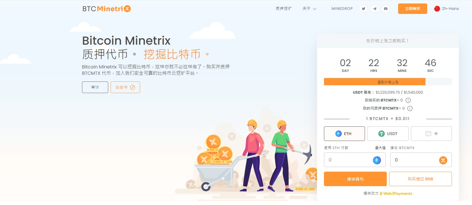 要購買$BTCMTX代幣,您將需要ETH、USDT、BNB或銀行卡。如果您計畫使用ETH購買,您可以立即開始質押挖礦賺取收益。